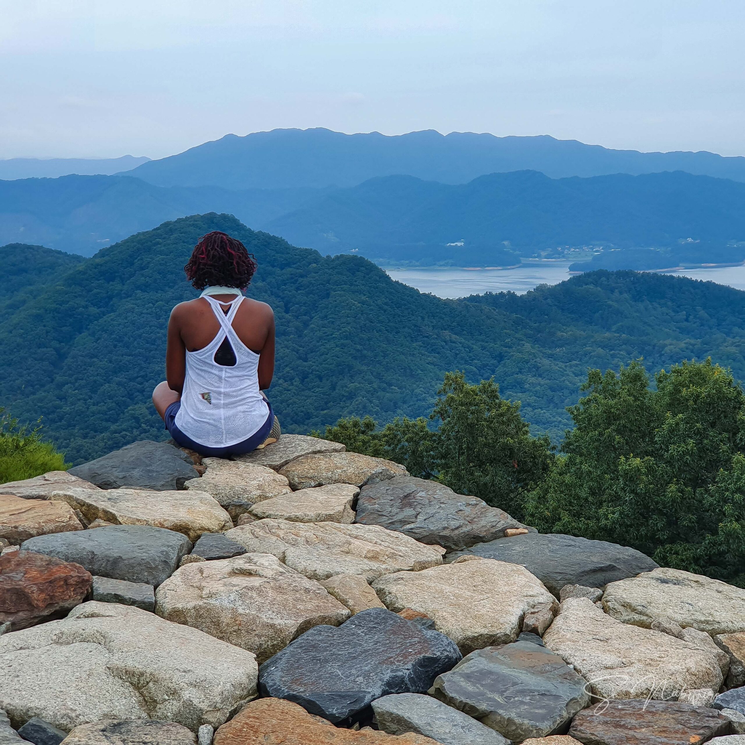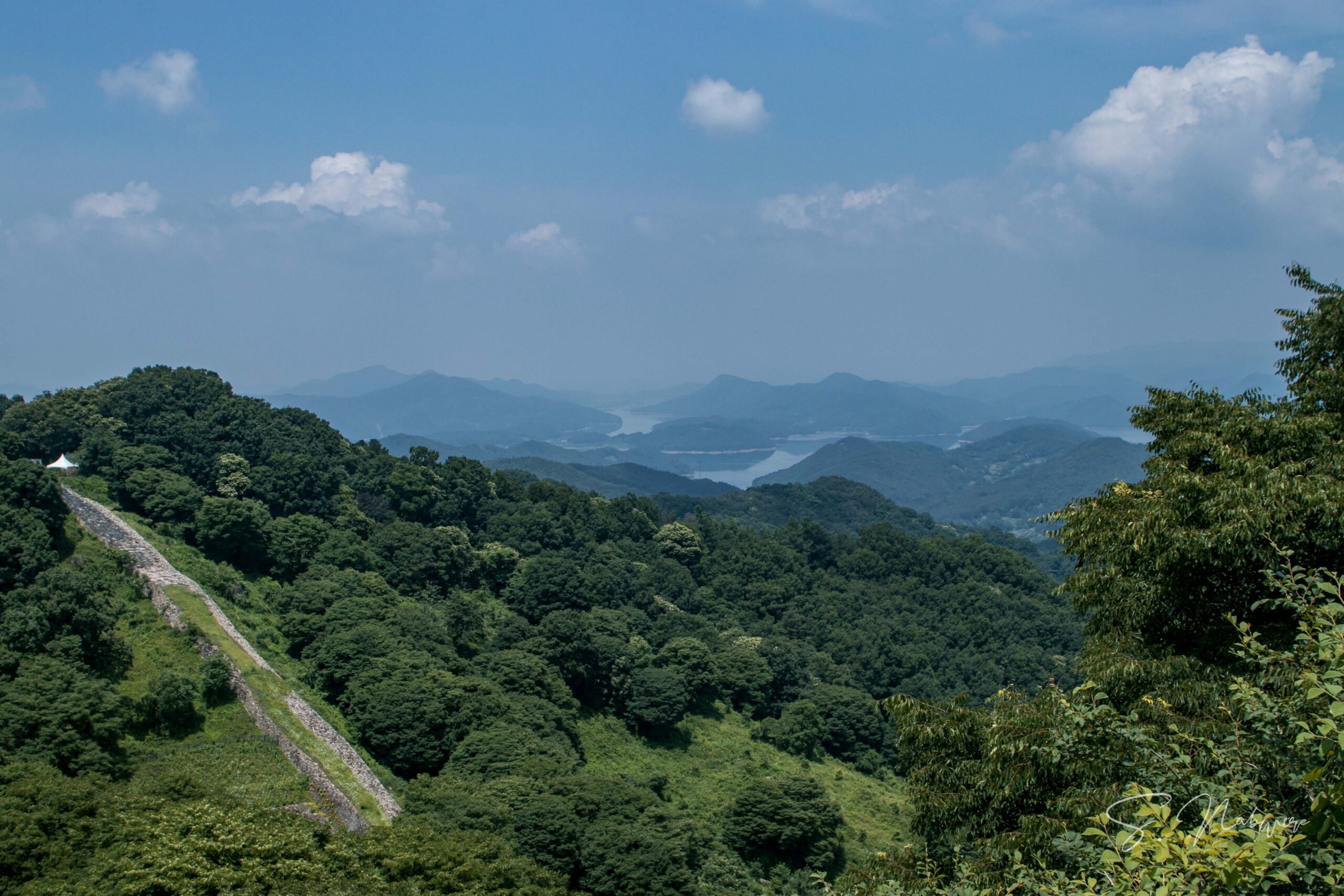 Section five of Daejeon Dullesan-gil, also known as Gyejoksanseonggil Trail, is one of my favorite trails to hike around the Daejeon. It is the 5th section of the 133 km mountain trail of Daejeon’s surrounding mountains – connecting mountains like Maninsan, Sikjangsan, and Gyejoksan. I have hiked this trail several times in winter and summer, and it’s been a different experience every time. Less than an hour into the course, you arrive at Galyeonseong fortress – Daejeon’s city monument 12, where you are graced with beautiful city views of the Southeastern part of Daejeon on the left side and idyllic views of Daecheong lake on the right.